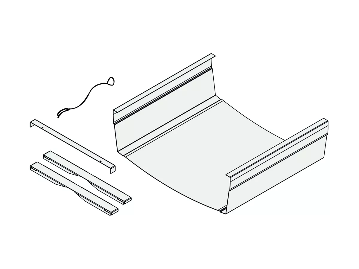 - The connection cover is fitted over the extended section of the chilled beam to conceal the pipe connections.