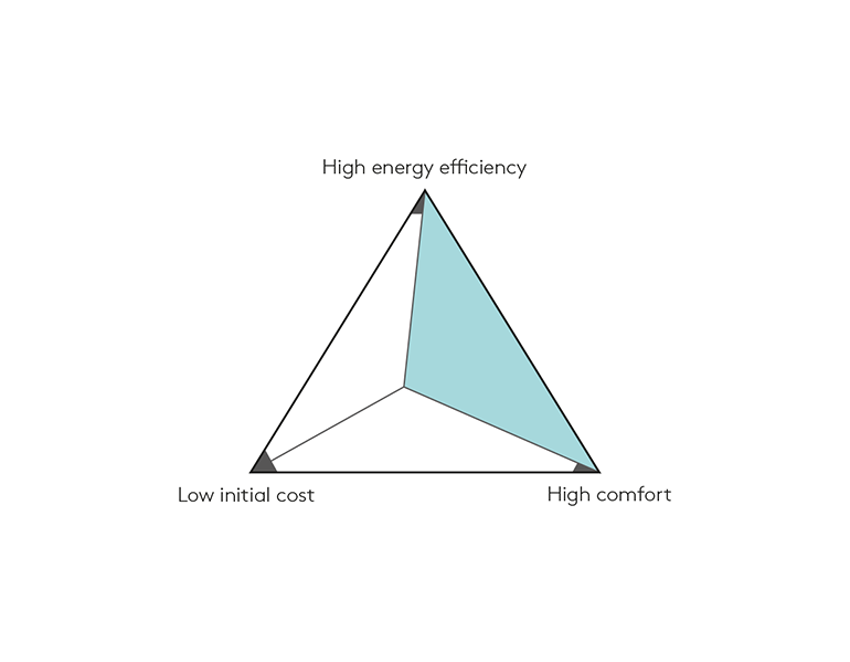 In schools, shopping centres and offices, demand-controlled ventilation is now the norm. With new behaviours and practices, ventilation requirements have changed for residential spaces too. Air-to-air heat exchange systems with demand-control now meet stringent requirements for both comfort and energy efficiency. Post-installation, the system runs automatically and each apartment is adjustable independently of adjacent apartments by means of a smart control panel. Each apartment’s control panel is connected to a centralised communications unit that deals with monitoring and settings. There are also options for connecting all the units to a master monitoring system.