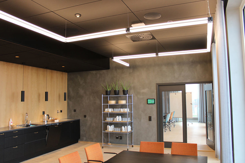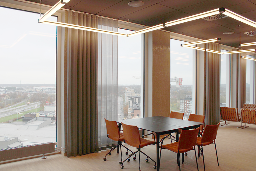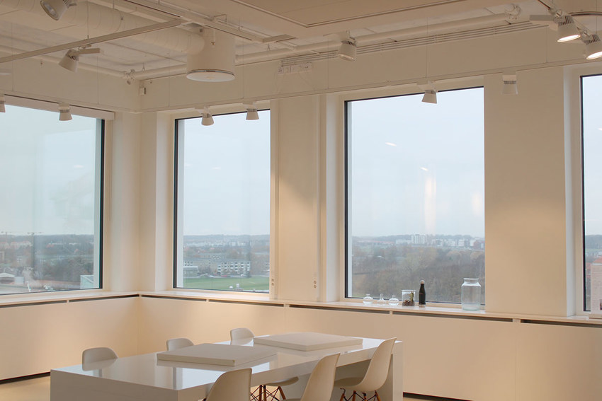Drottningen really stands out when it comes to comfort. The office spaces are large, well decorated and have big windows which provide excellent views and plenty of daylight – which is important for our well-being. But large windows can also create issues in terms of the indoor climate. When it’s too sunny the indoor temperature can get too high and the sun rays can create glare that hurt our sight and concentration. Here, the Swegon WISE system comes with internal sunscreen control which makes it possible to control the indoor curtains and allow for an optimal indoor climate.