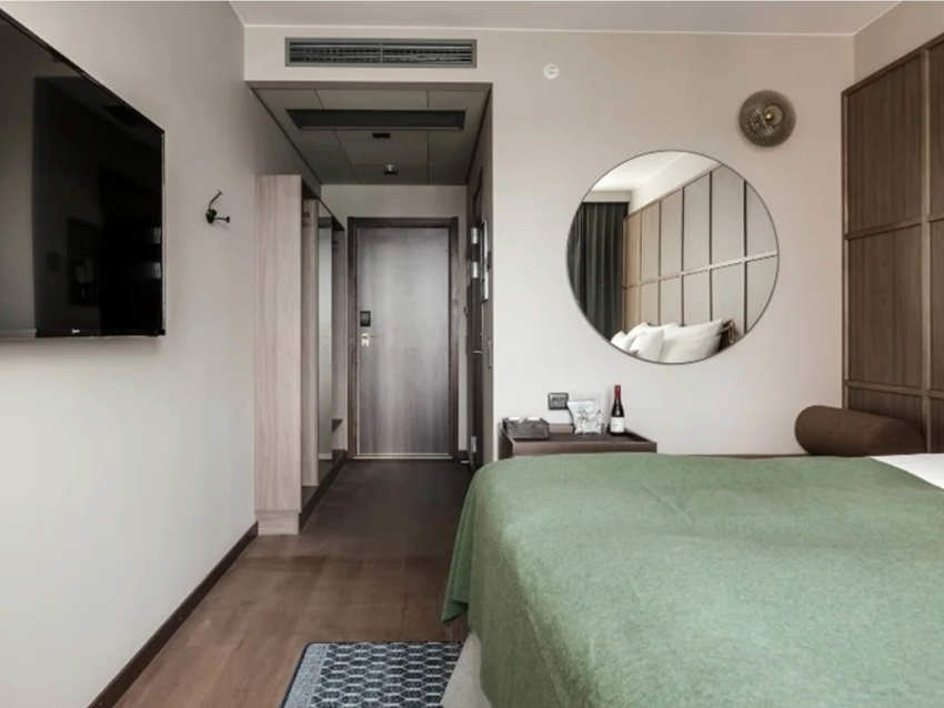 The hydronic comfort module called Swegon PARAGON was provided in each and every guest room for as well ventilation as heating/cooling. Two different types of air diffusers were provided to the lobby, hallways, meeting rooms and other common areas, Swegon EAGLE ceiling and/or PELICAN CE HF. All air diffuseres were custom coloured in dark nuances which make the products blend in with the dim and calm interior design of the hotel.