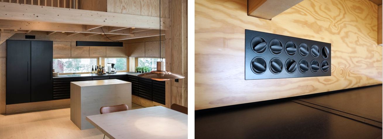 The indoor climate solution in Villa Moelven is based on mechanical supply and extract air. New air is introduced, and used air is brought out, through our Swegon EAGLE wall diffusers. The used air is extracted by the means of our Swegon CASA R9 air handling unit, which has a built in FTX-system for heat recovery. Heat recovery allows for the warm energy in the extract air to heat the new supply air. When recirculating energy, a limited amount of new energy is needed to keep the indoor temeperature at a required comfortable level.