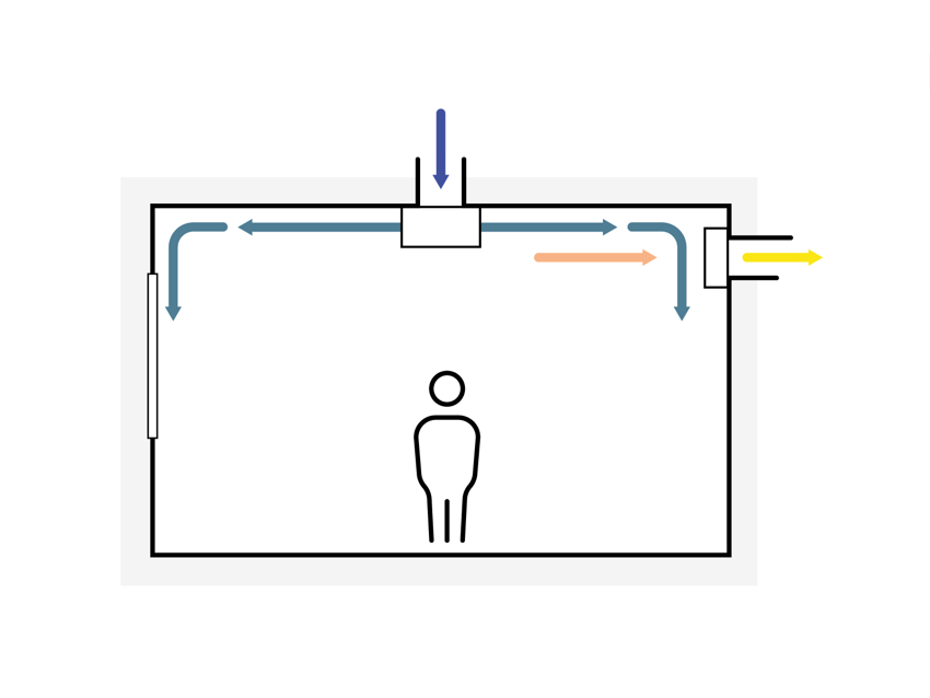 The key objective of ventilation is to replace polluted air with fresh air. This may be done in a variety of ways. It is important to be familiar with the ventilation principles in the assignment of creating healthy and comfortable indoor climates. The design, especially ceiling height, and purpose of the building, the people in the premises and their activities are the main determinant factors of which principle to use. This guide will present the fundamentals of two common ventilation principles.