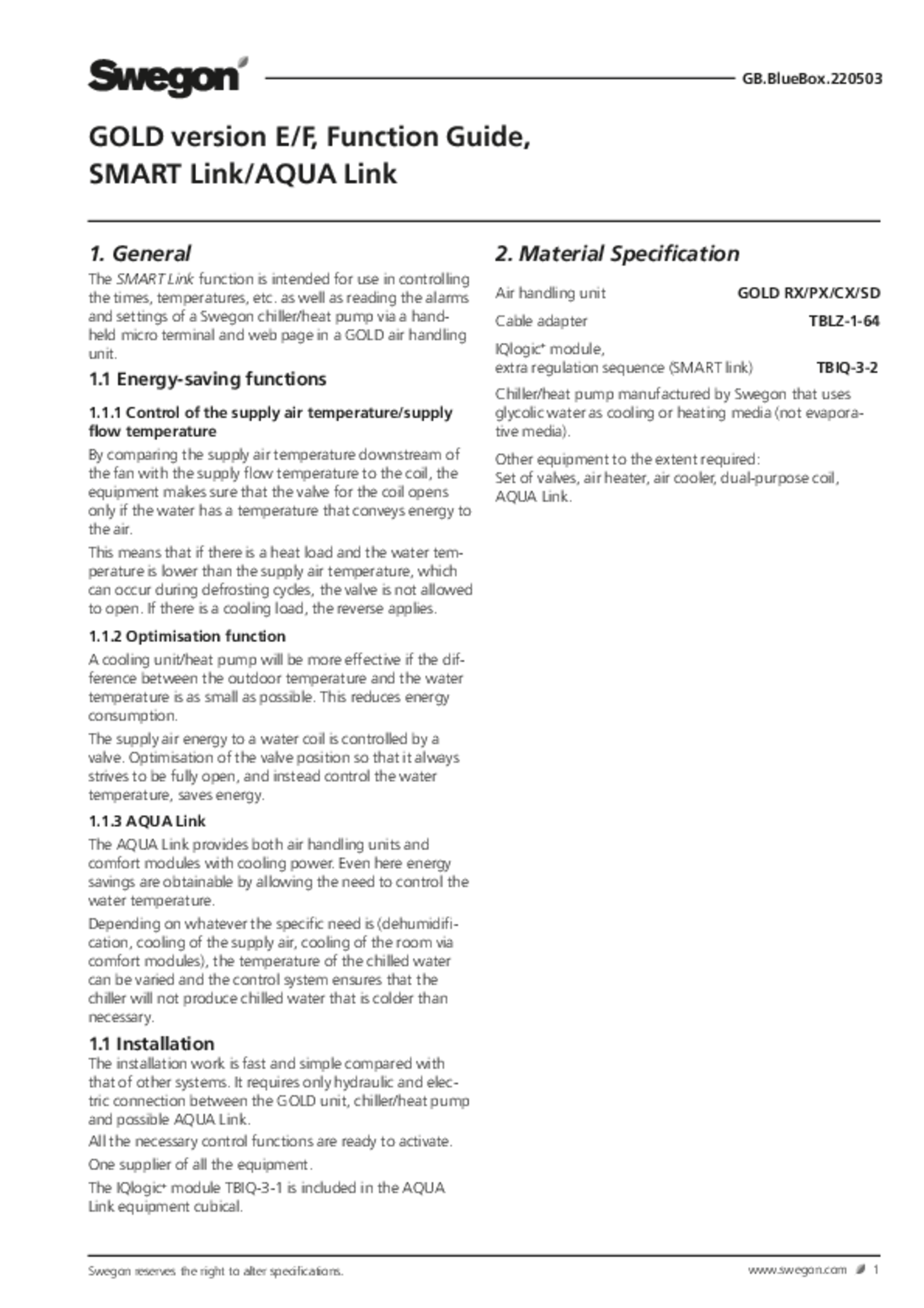 - When combining this solution with a VAV/DCV system (pressure-controlled GOLD), minimum airflow demand for the chiller/heatpump to work properly must be respected (see manual below).