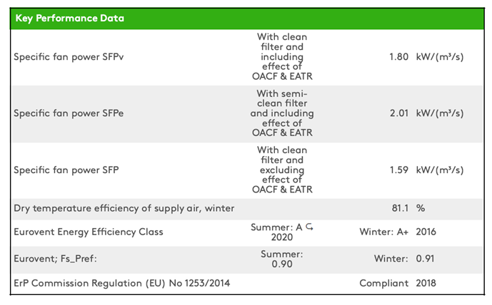 SFP is calculated without additional pressure drop on the extra. This might be interesting for units with rotary heat exchanger and return air mixing section.