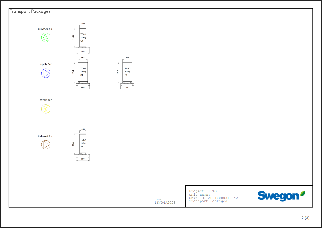 The third phase of the Transport packages project is now complete. In this phase, the user will be able to see a new printout page called Side View. On this page, we are showing the unit delivery parts from the side, including dimensions.