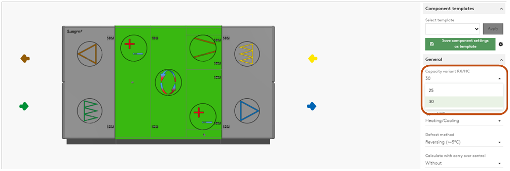 It is now possible to choose capacity variant of the heat pump per physical size.
