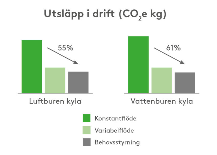 Mindre energianvändning betyder också lägre klimatavtryck. Med en behovsstyrd lösning kan COâ‚‚-utsläppen minska med upp till 61 %, vilket gör det till ett effektivt sätt att bidra till en mer hållbar framtid.​