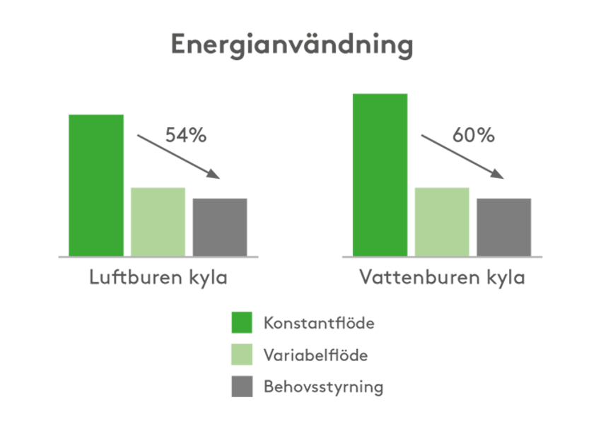 För att klara klimatmål och framtida krav på byggnader behövs det göras energieffektiva systemval. Redan idag är det svårt att klara BBRs krav utan någon typ av behovsstyrning.​
