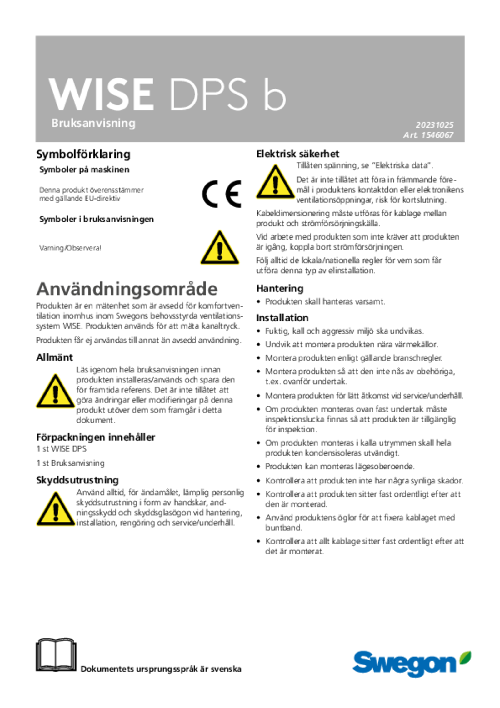 | Bruksanvisning (pdf 1.24MB) | WISE DPS b | IOM-manual | |