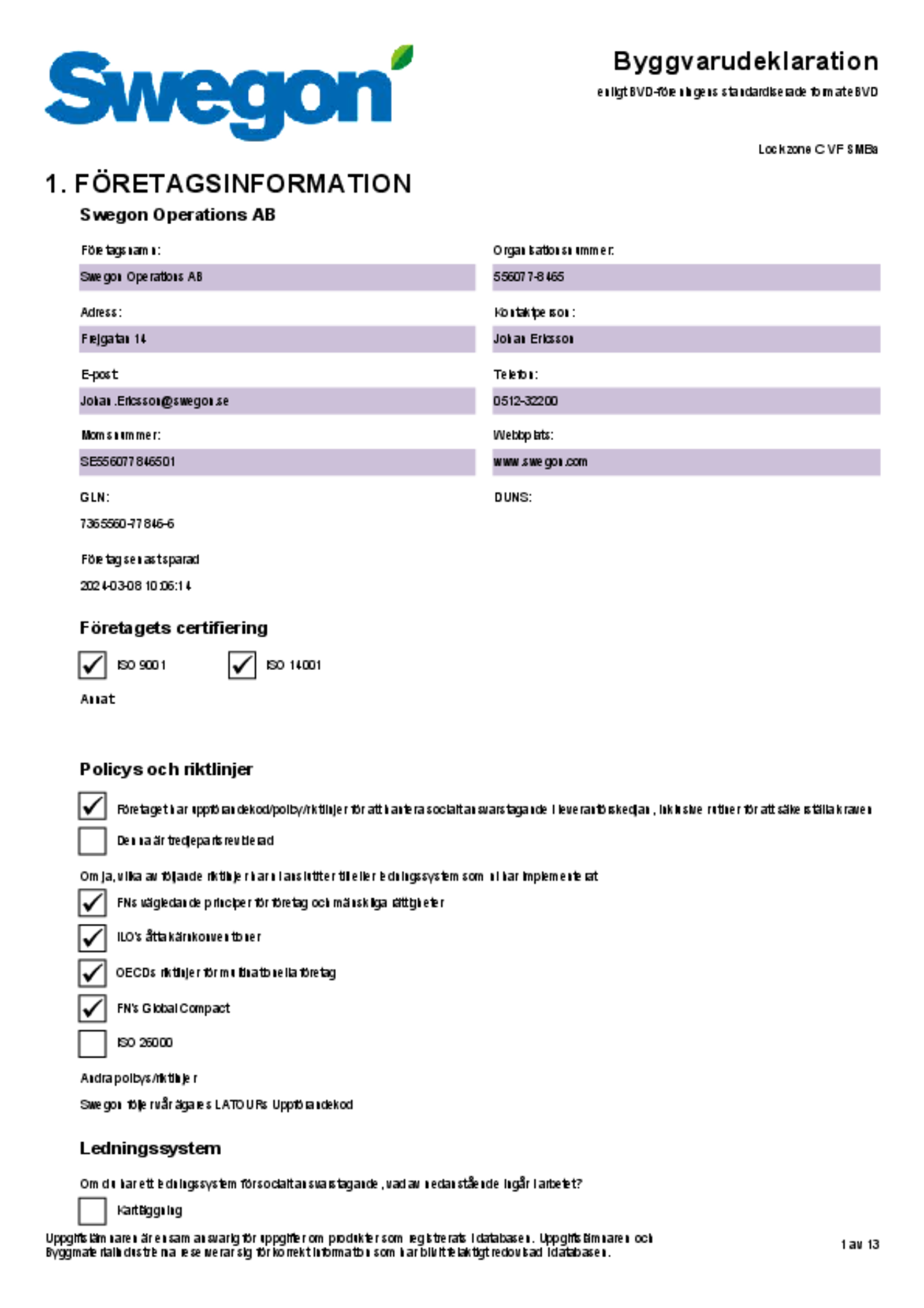 | Byggvarudeklaration (pdf 151.45kB) | LOCKZONE C VF SMBa | Kvalitetsdokument | |