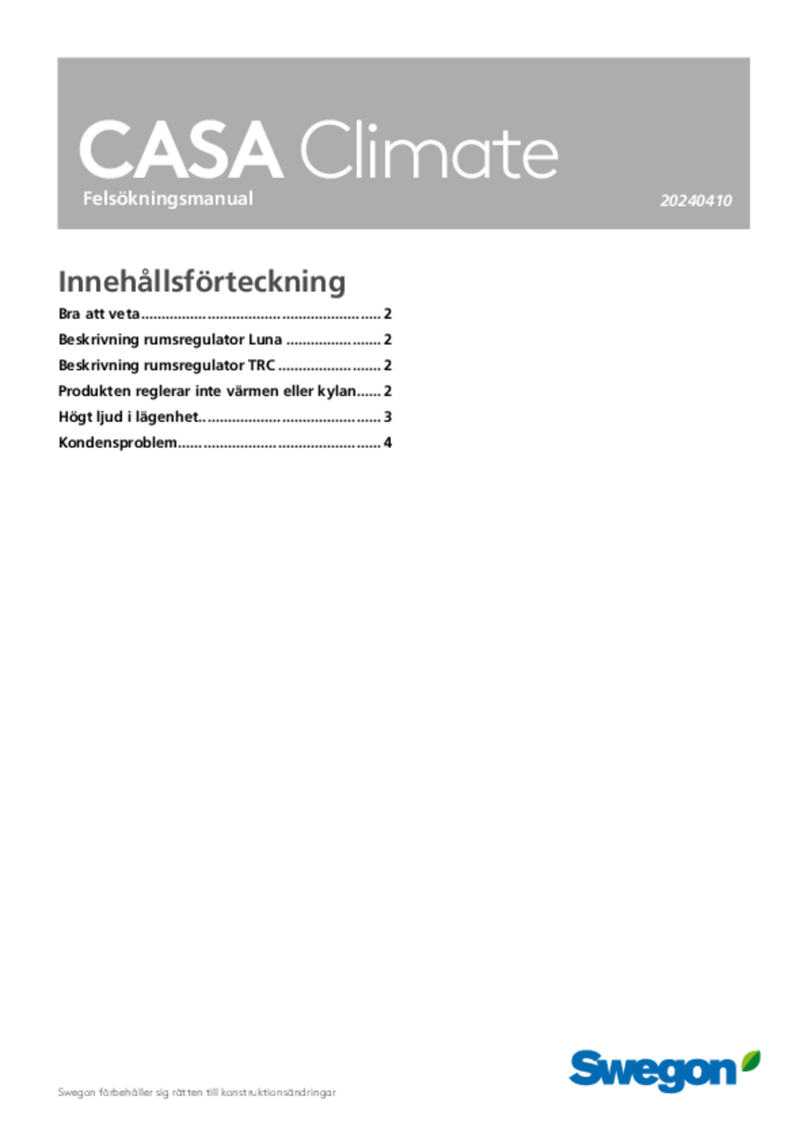 CASA Climate är ett unikt system för värme, ventilation och kyla, i flerbostadshus. En prisvärd och ekonomisk lösning som är utformad för behoven i bostäder som förenklar konstruktions- och byggprocessen eftersom de olika klimatkomponenterna arbetar sömlöst tillsammans och levereras av en och samma pålitliga partner. För de boende erbjuder modulen ett optimalt inomhusklimat som lätt kontrolleras från en manöverpanel och de olika systemen kommer inte i konflikt med varandra. För fastighetsägarens del garanterar CASA Climate energieffektiv och ekonomisk värme, kyla och ventilation under hela sin livscykel.