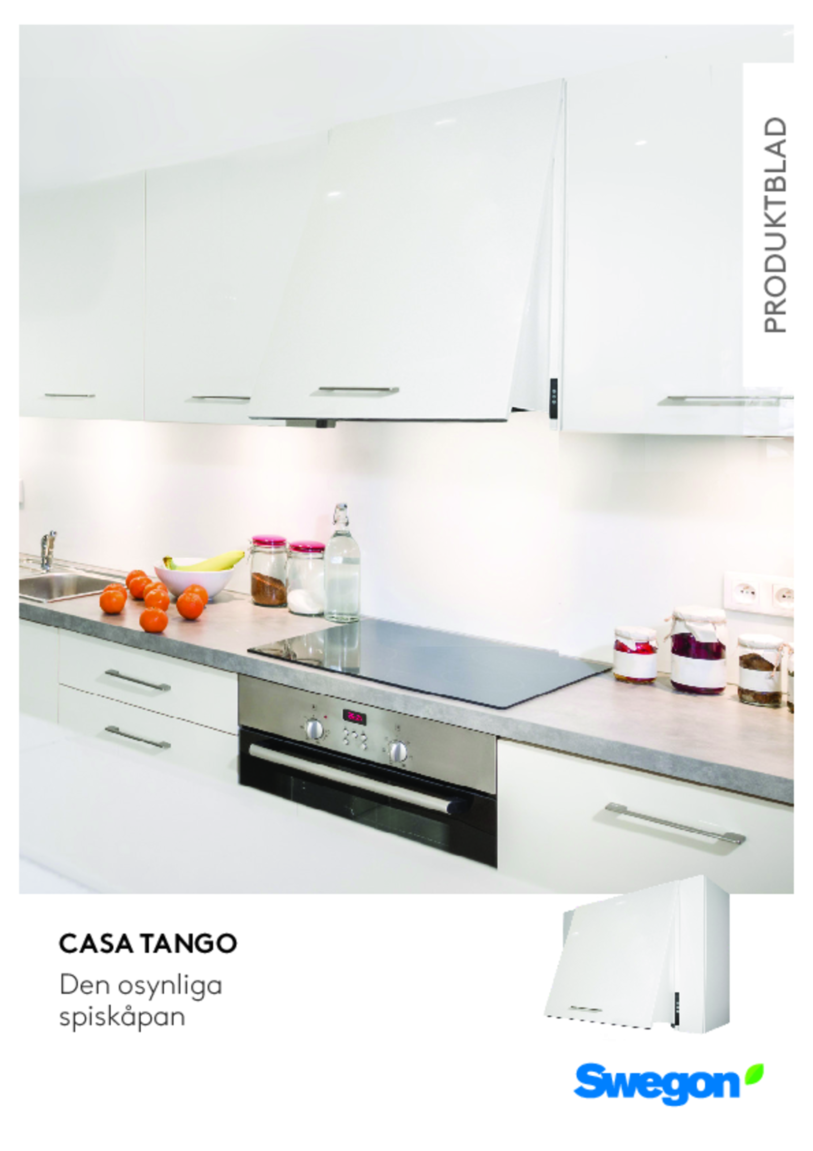 CASA TANGO passar perfekt i moderna kök. Tillsammans med ditt hems ventilationssystem garanterar det frisk inomhusluft och energieffektiv, balanserad ventilation i ditt hem. Tack vare sin form och design har Tango en exceptionellt hög luktfångande förmåga som möjliggör effektiv rökavledning med lägre luftflöden vilket resulterar i lägre energiförbrukning, med mindre tryckskillnad och lägre ljud.