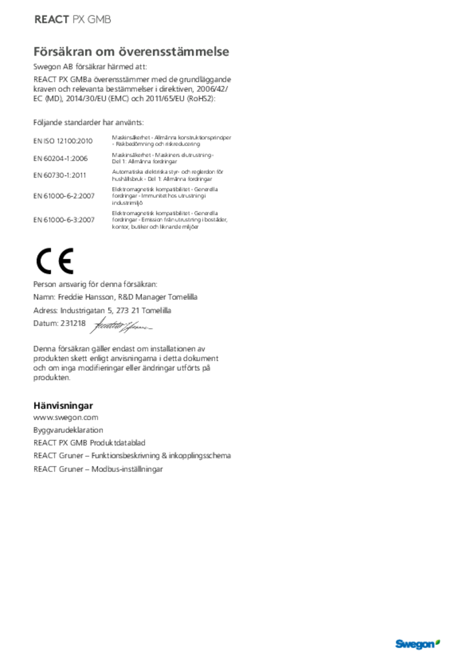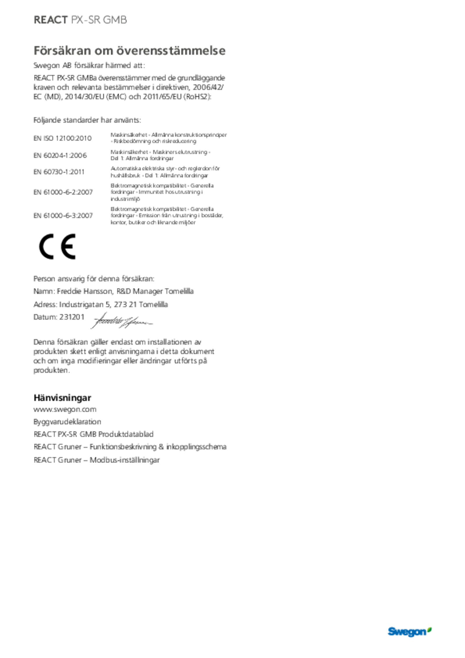 | CE-deklaration (pdf 60.2kB) | REACT PX-SR GMBa | Kvalitetsdokument | |