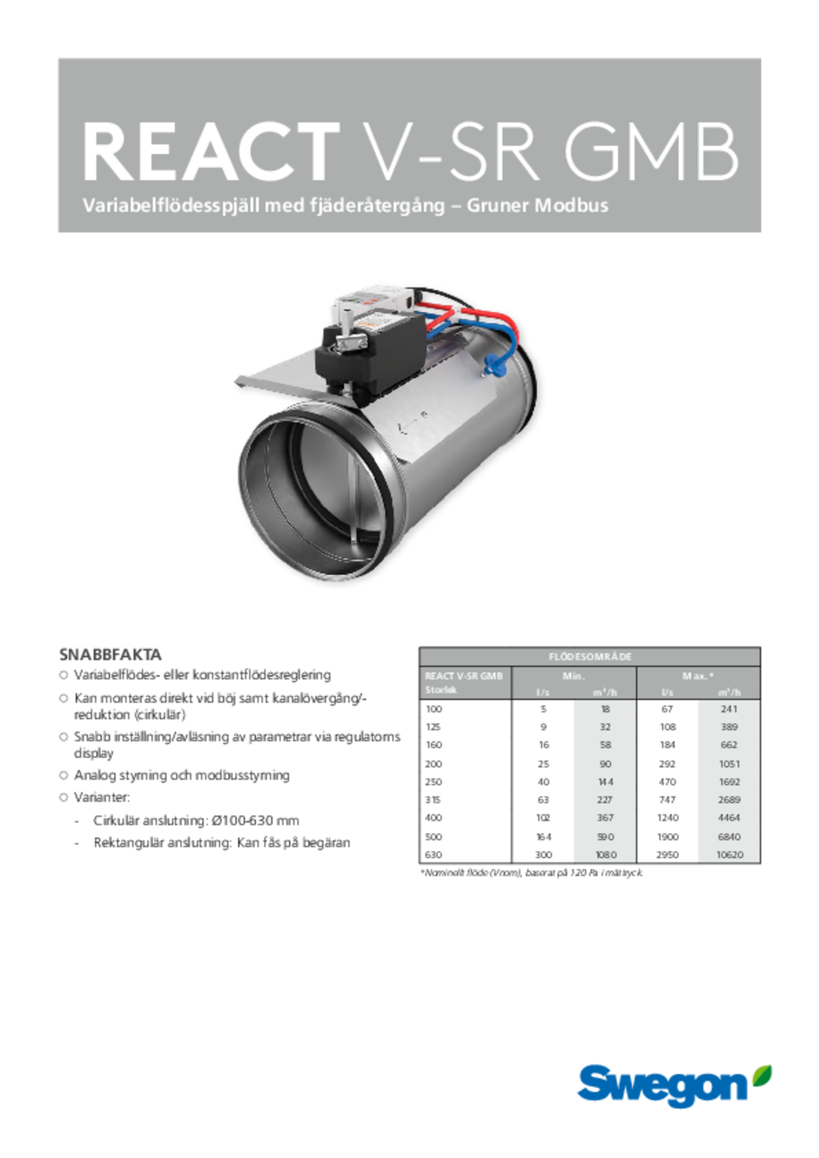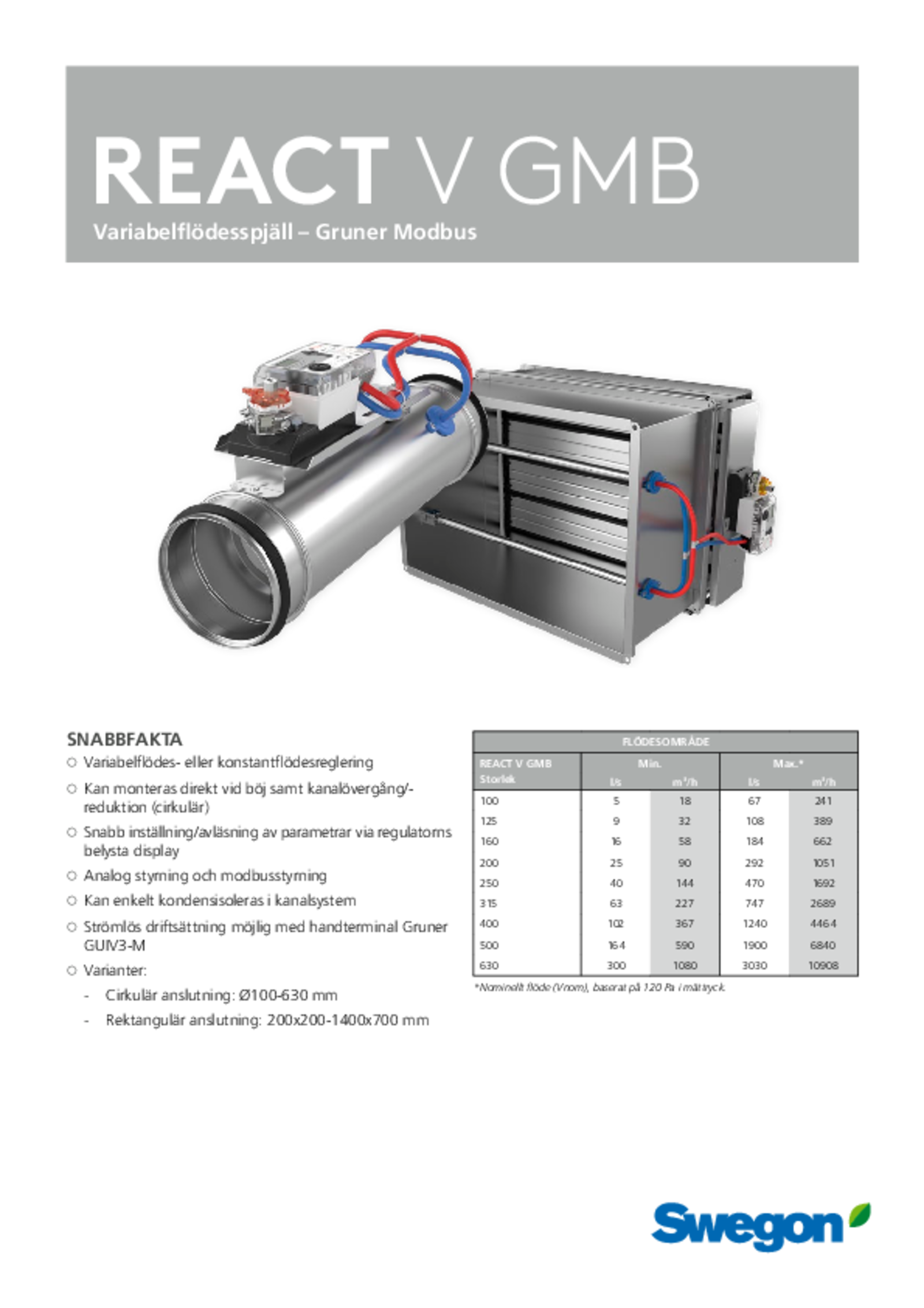 | Variabelflödesspjäll – Gruner Modbus (pdf 1.44MB) | REACT V GMBa | Teknisk katalog | |
