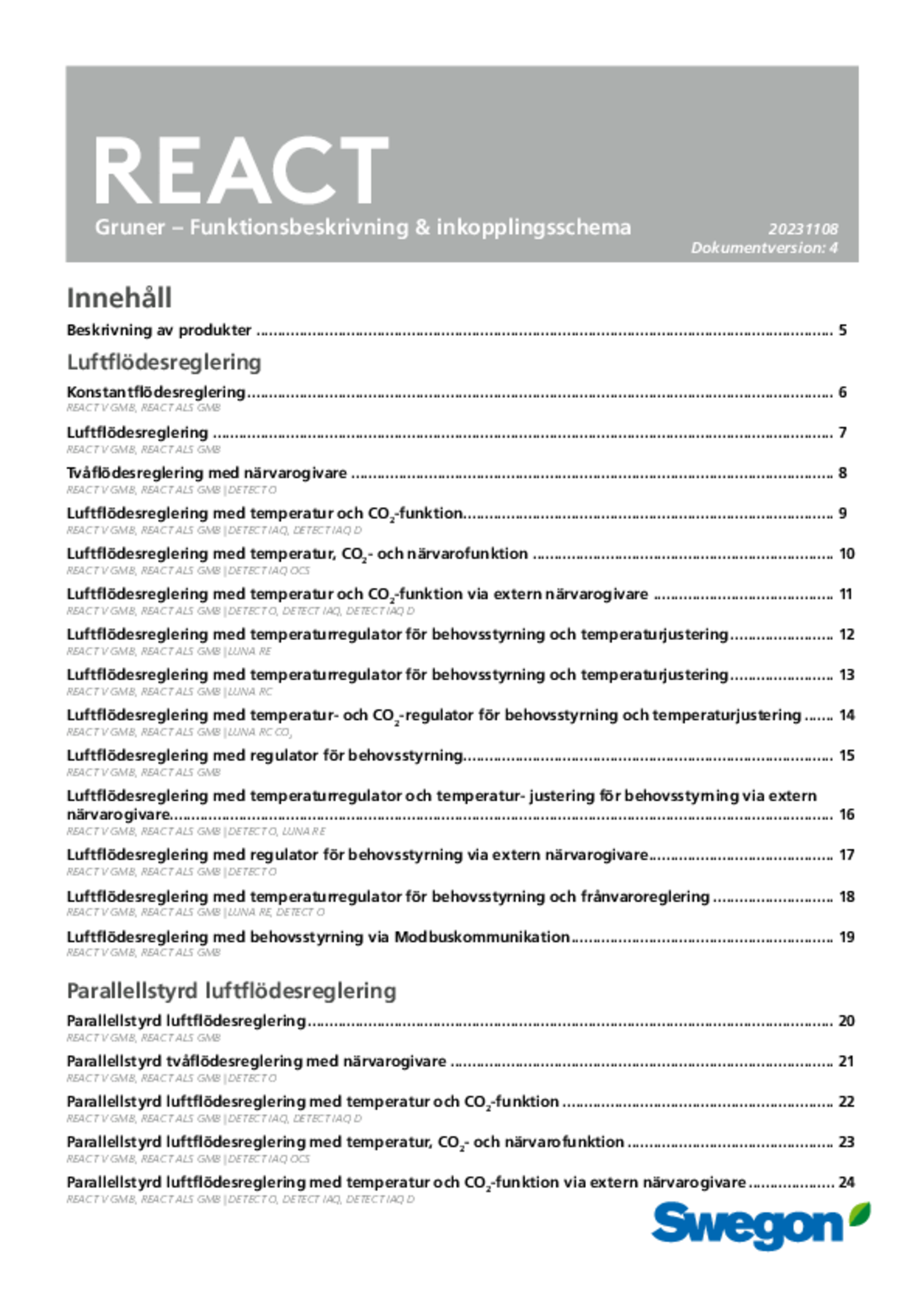 | Funktionsbeskrivning & inkopplingsschema – Gruner (pdf 3.82MB) | REACT ALS GMB, REACT M GMB, REACT P GMB, REACT PX GMB, REACT PX-SR GMB, REACT V GMB, REACT V-SR GMB | IOM-manual | |