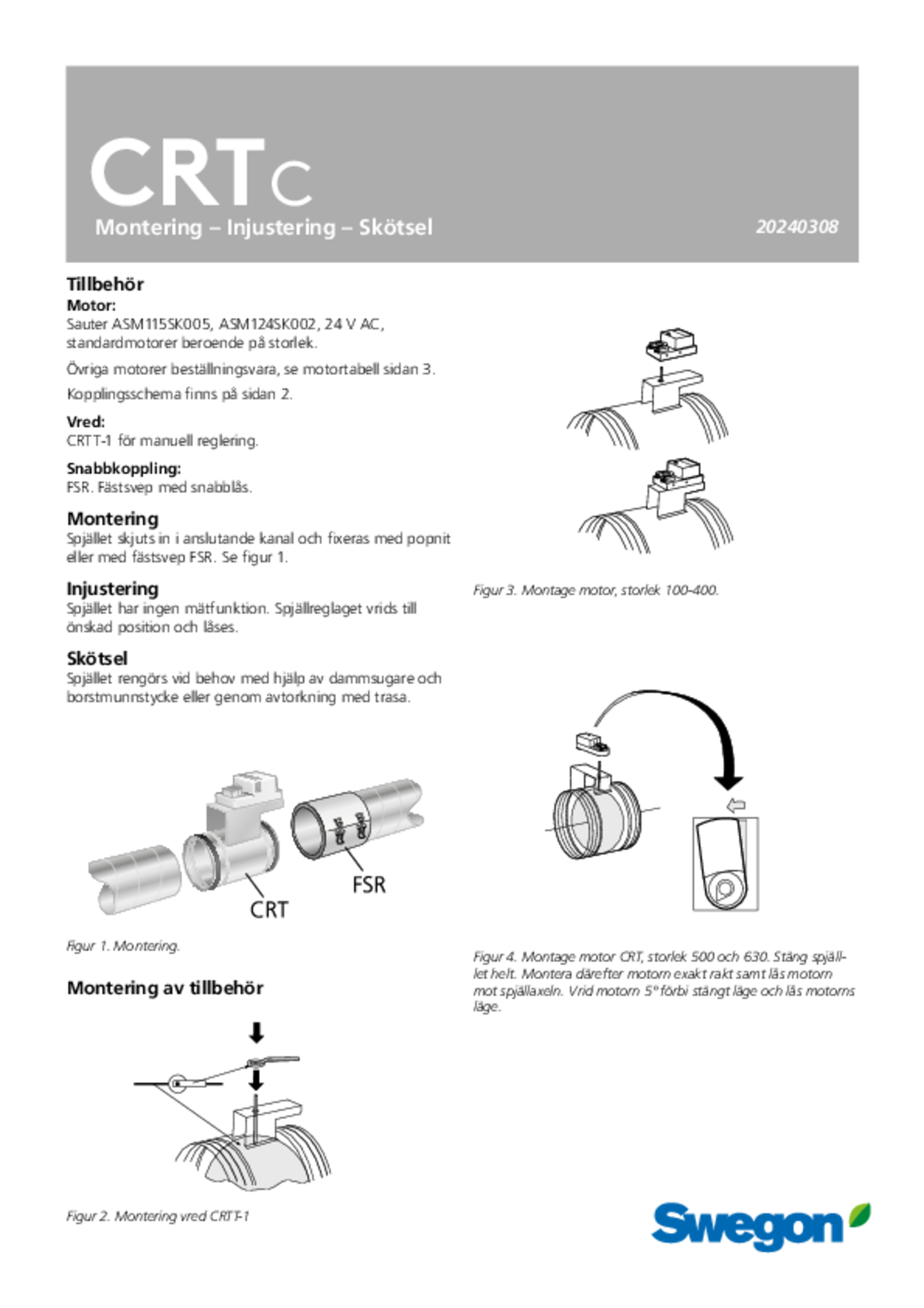 | Montering, injustering, skötsel (pdf 480.73kB) | CRTc | IOM-manual | |