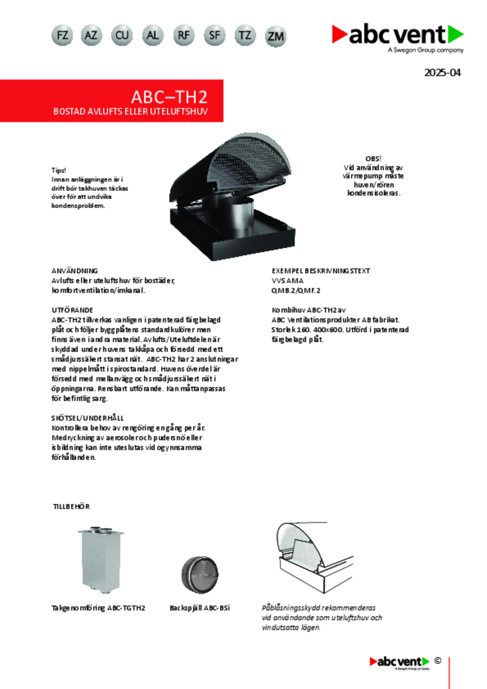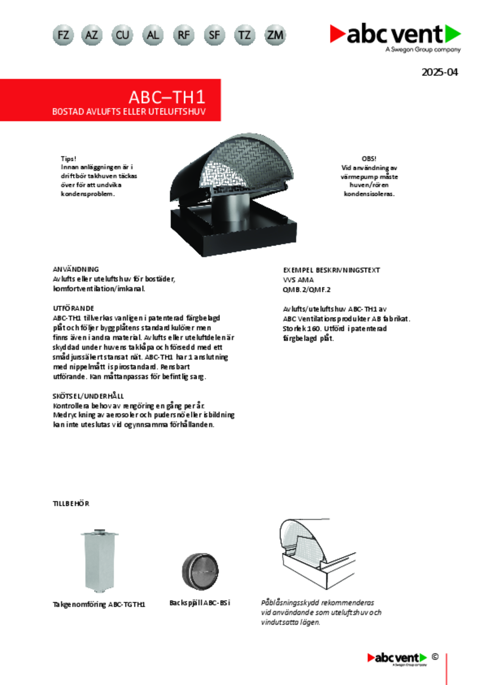 | Rektangulär avlufts- eller uteluftshuv med 1 anslutning för bostadsventilation (pdf 1.49MB) | ABC-TH1 | Teknisk katalog | |