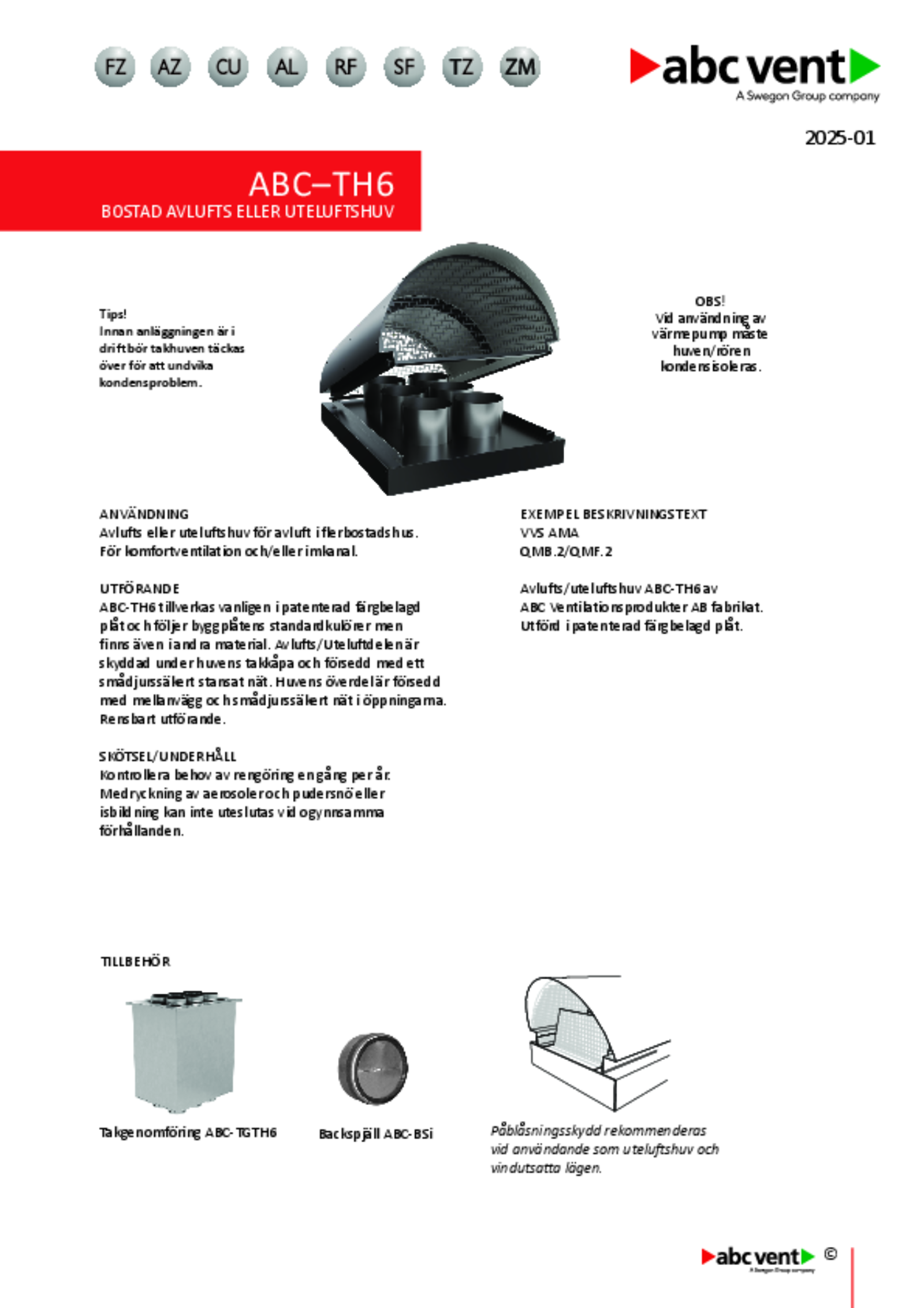 | Rektangulär avlufts- eller uteluftshuv med 6 anslutningar för bostadsventilation (pdf 1.53MB) | ABC-TH6 | Teknisk katalog |