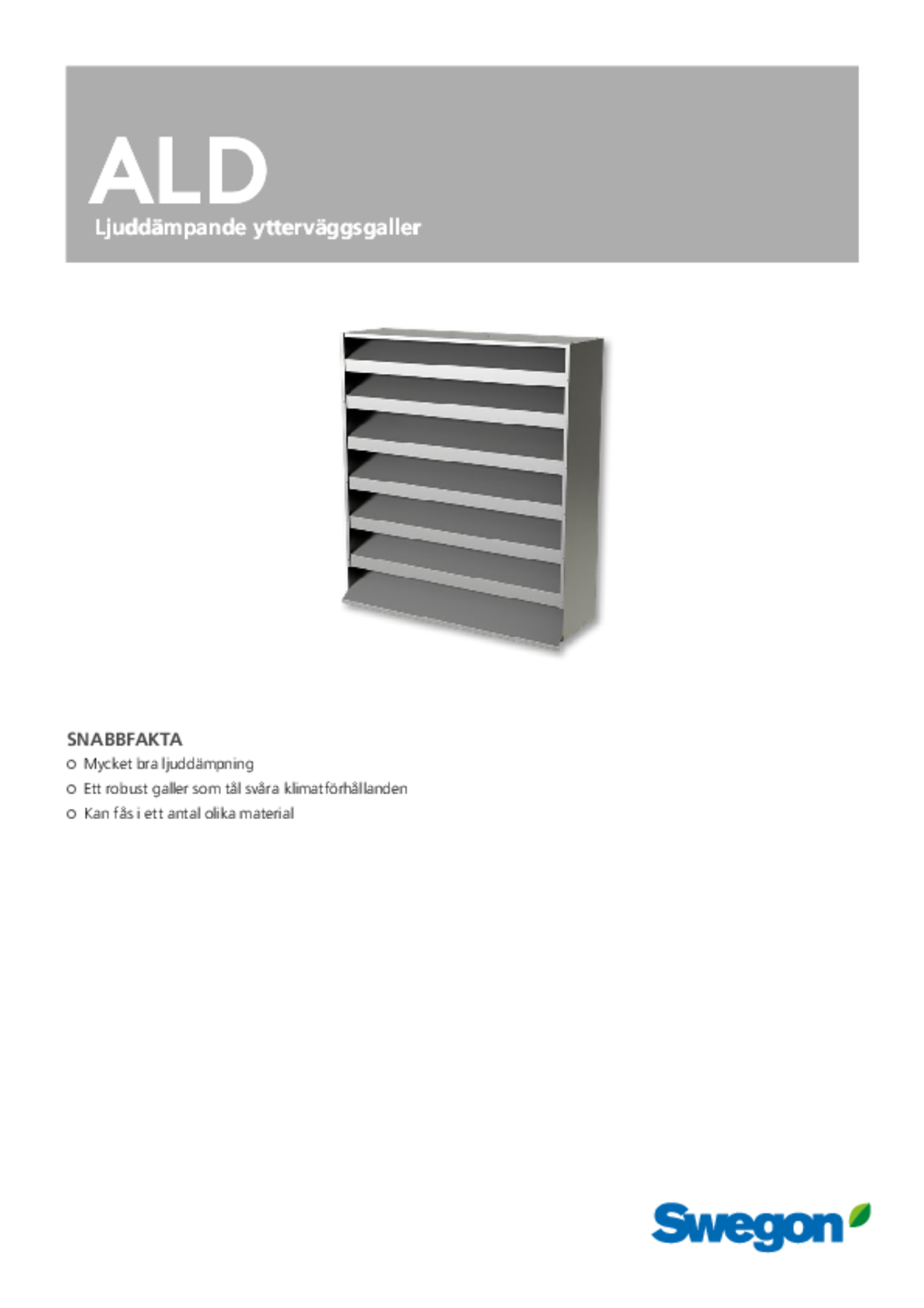 ALDa-gallret reducerar effektivt buller från fläkt- och maskinrum mm. till omgivningen. Bullret dämpas vid passagen mellan de ljudabsorberande lamellerna.