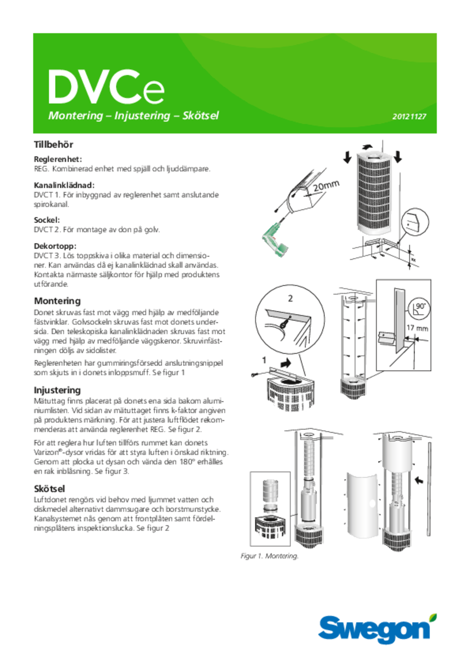 DVC är ett komplett, kvartscirkulärt deplacerande luftdon för väggmontage, vilket tillför luft med låg hastighet till vistelsezonen. Spridningsbilden är lätt omställbar tack vare donets vridbara luftriktare. Som tillbehör till finns golvsockel, kanalinklädnad och reglerenhet.