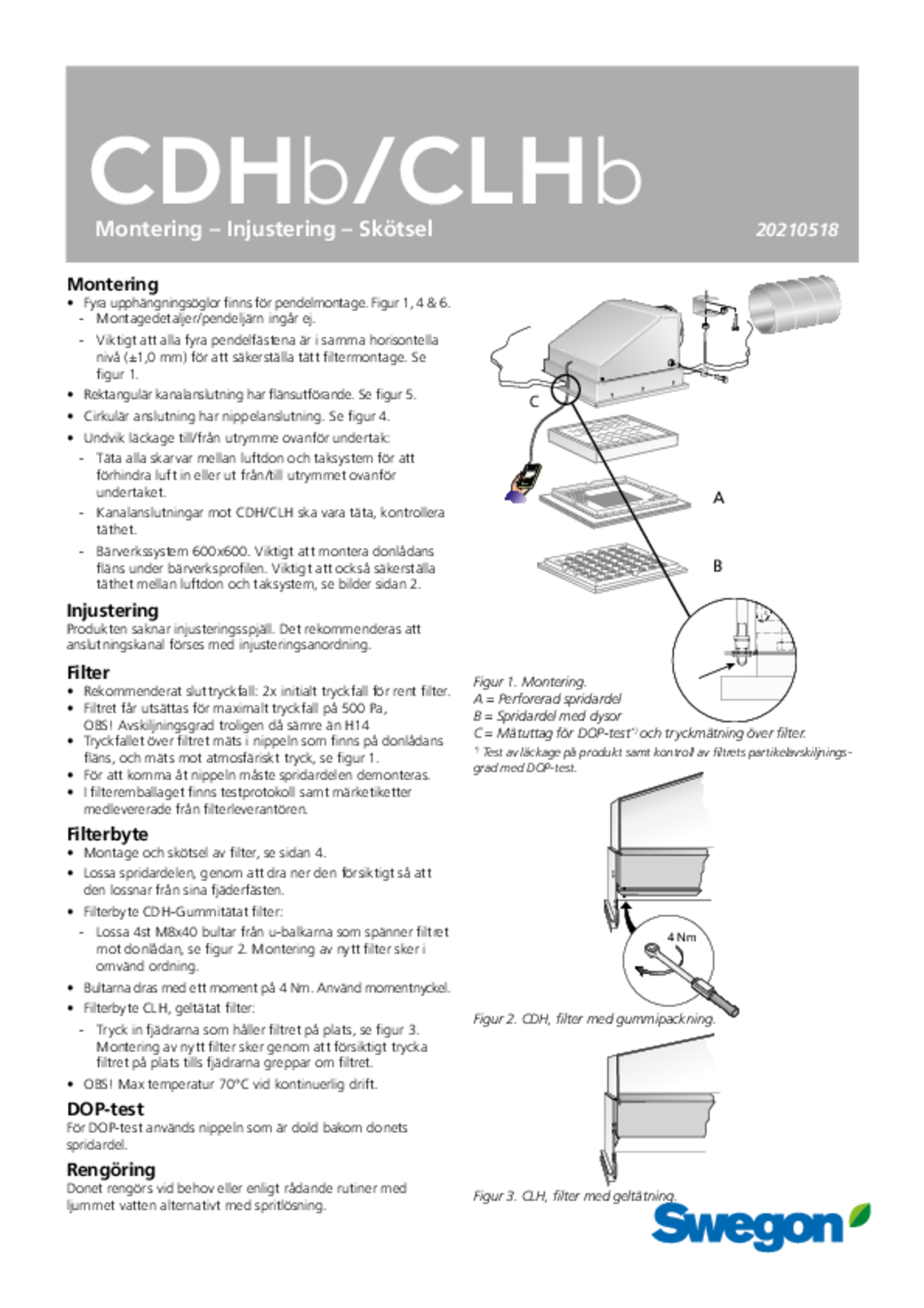 - Storlek CDH/CLH 60 anpassat för undertaksystem 600x600 med synligt bärverk