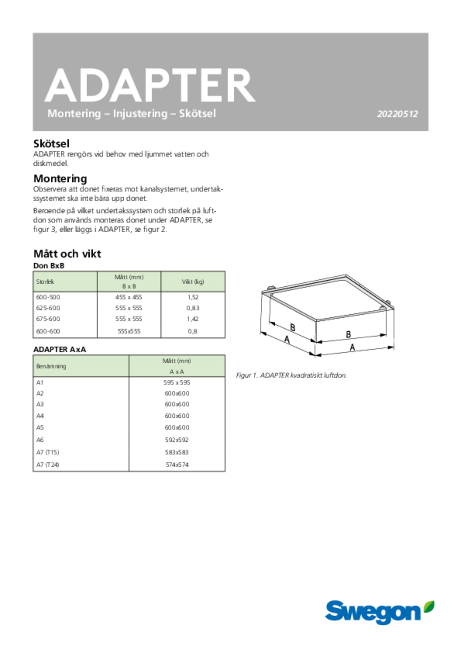 | Montering, injustering, skötsel (pdf 485.23kB) | ADAPTER | IOM-manual | |