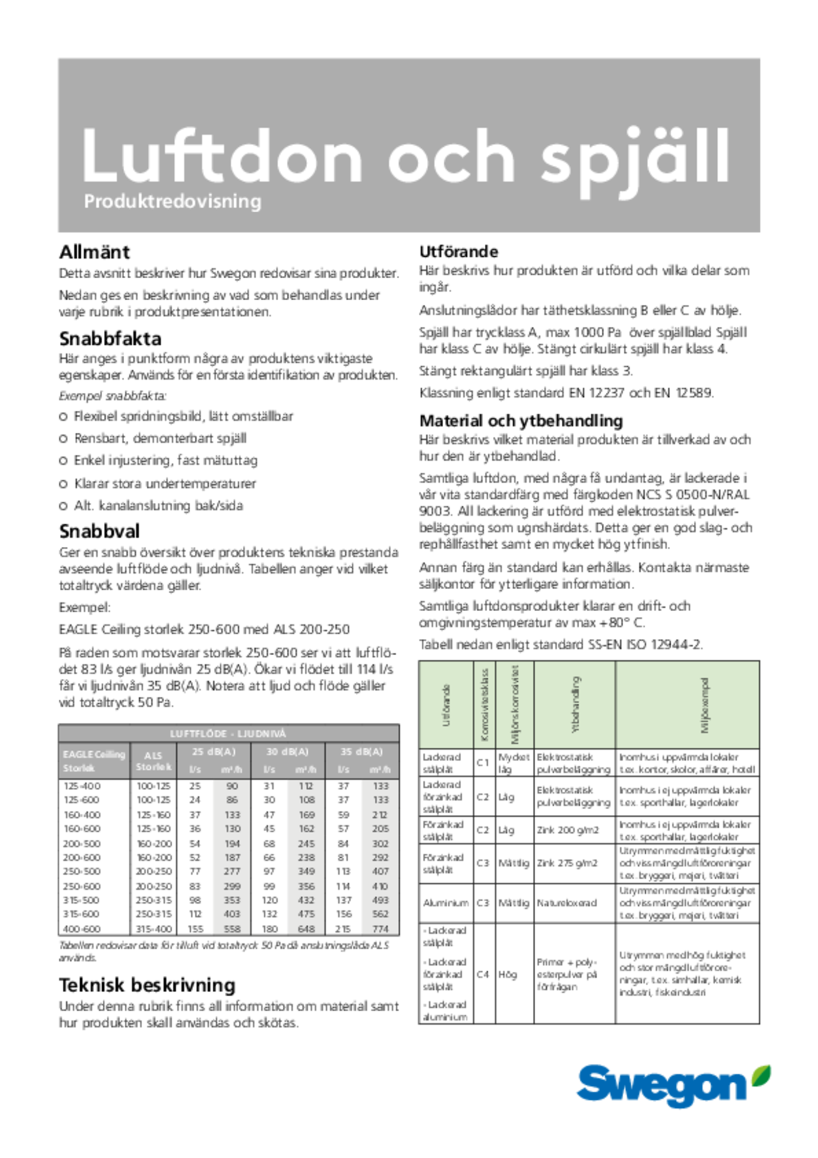 | Produktredovisning - Luftdon & spjäll (pdf 244.9kB) | Luftdon, spjäll | Broschyr |