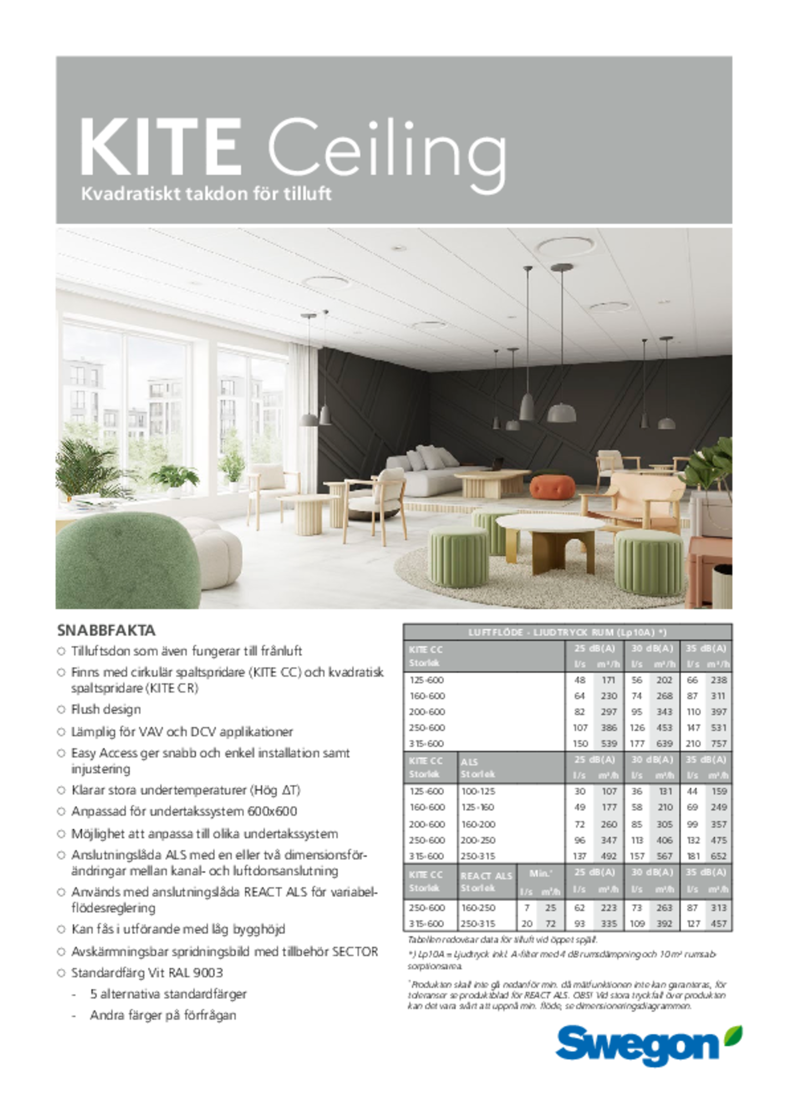 | Kvadratiskt takdon för tilluft (pdf 3.03MB) | KITE CCa, KITE CRa | Teknisk katalog | |