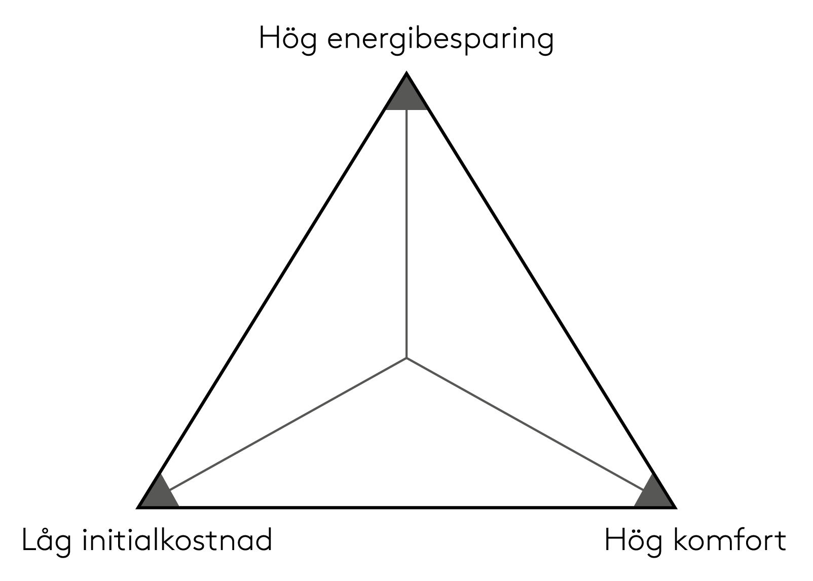 Varje projekt, oavsett om det gäller nyproduktion eller renovering, har sin specifika kravbild och det gäller att hitta den systemlösning som passar bäst till det aktuella projektet. Idealet vore givetvis ett system som är oslagbart vad gäller både energibesparing och komfort, samtidigt som det är billigast, men i praktiken måste det alltid göras en avvägning mellan dessa faktorer. Vad är viktigast i ditt projekt?