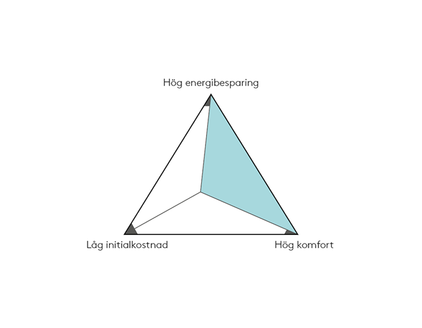 Systemet innebär högsta komfort för de boende och ett sunt inneklimat för byggnaden pÃ¥ sikt. Driften är dessutom mycket energieffektiv, eftersom ventilationen är individuellt anpassad för varje lägenhet. Systemet uppfyller samtliga högt ställda krav pÃ¥ luftflöden, drag, ljudnivÃ¥ och energieffektivitet.