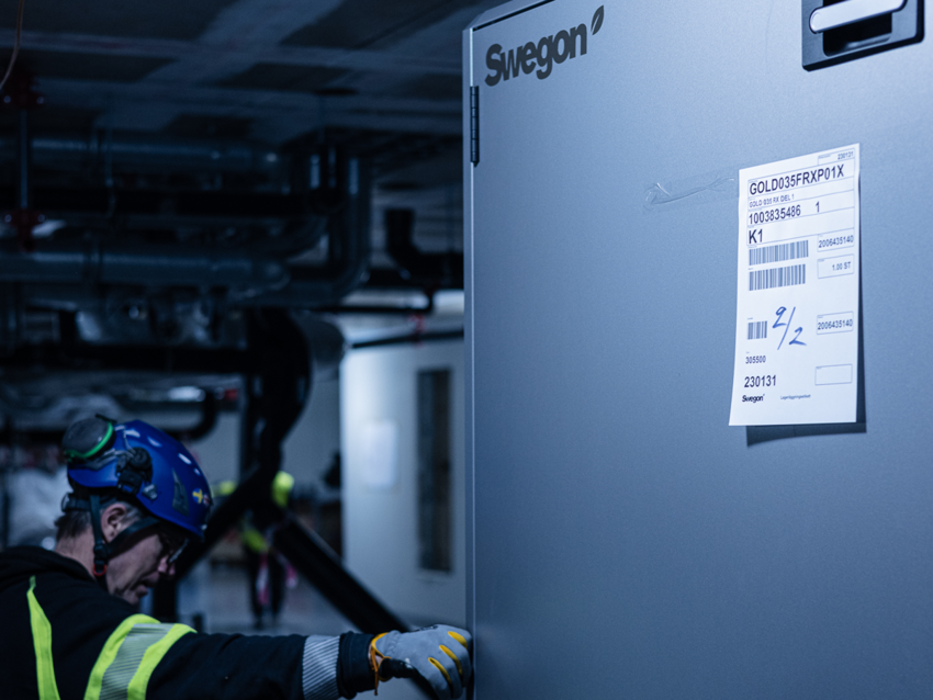 Lägenheterna i Karlatornet är fördelade på fyra bostadsrättsföreningar och samtliga valde samma ventilationslösning från oss på Swegon. Totalt levererades 19 stycken GOLD-luftbehandlingsaggregat av olika storlek till projektet, från den allra minsta 008:n. Därtill behövdes två större enheter till några större lägenheter och till de översta våningarna avsedda för besökare. Dessa behövde kundanpassas eftersom den stora rotorn var tvungen att levereras i delar. Bygghissen var den enda vägen för människor och saker att komma upp och in i byggnaden och standardrotorn var alldeles för stor för att gå in i hisskorgen.