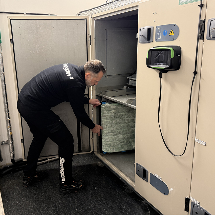 I det här projektet arbetar vi med vad vi på Swegon kallar RE:vitalise – ett hållbarhetskoncept där befintliga luftbehandlingsaggregat uppgraderas med modern funktionalitet för att förlänga deras livslängd. Genom att minimera behovet av nyproduktion, transporter och installation bidrar RE:vitalise till att kraftigt minska mängden inbäddat koldioxid i byggnader.