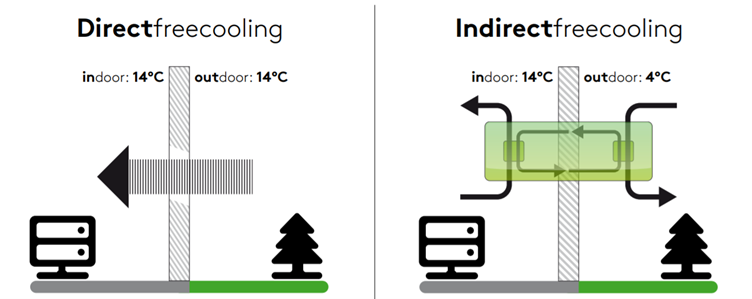 Det går att nyttja frikyla både för vätske- och luftburna system. I sin enklaste form används utomhusluften i luftburna system, antingen direkt eller indirekt, där någon typ av värmeväxlare mot uteluften installeras. För att det skall fungera måste utomhustemperaturen vara lägre än den önskade inomhustemperaturen. För luftburna system ska luften vara högst 14-16°C för att inte skapa svårigheter med t.ex kondens.