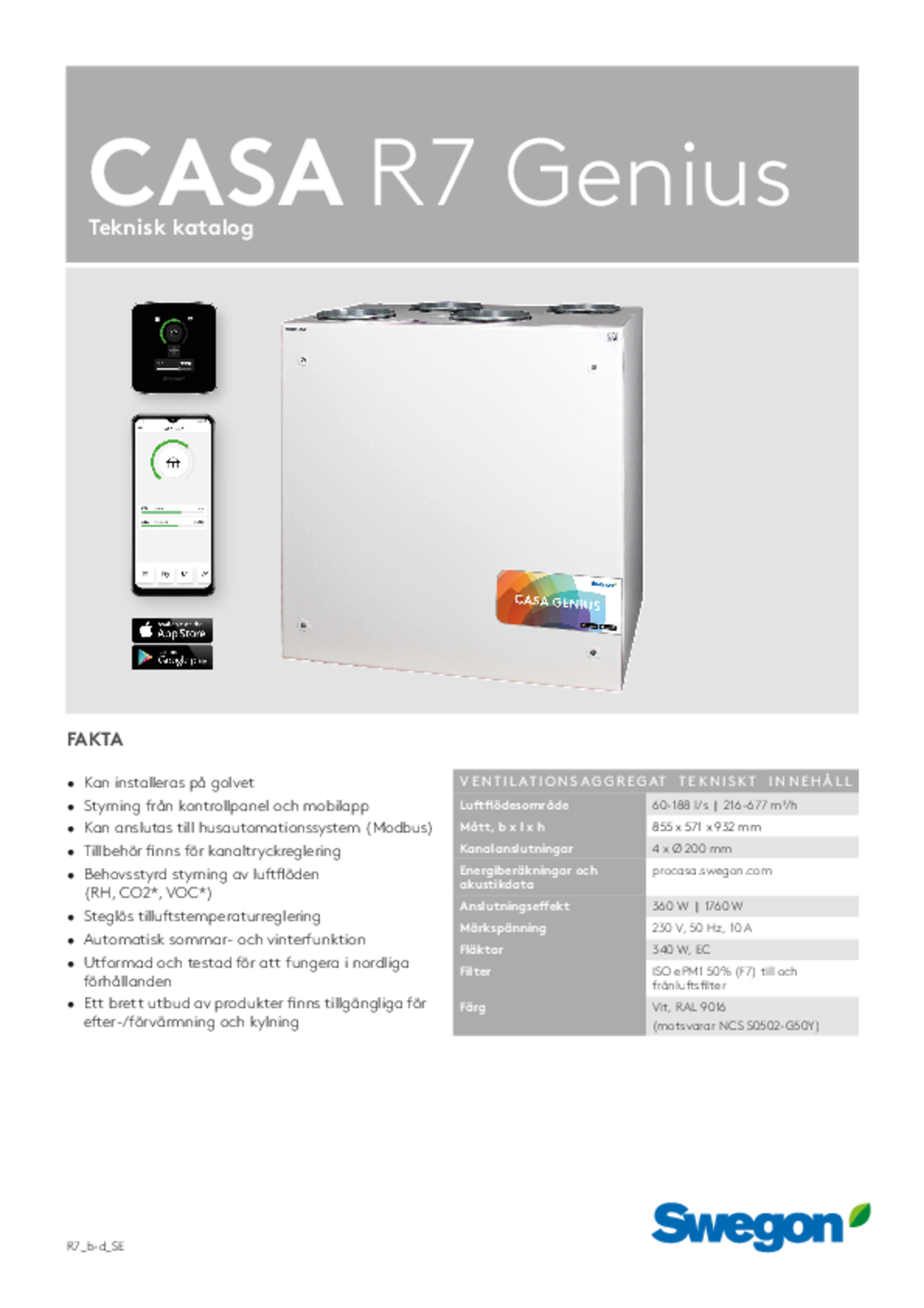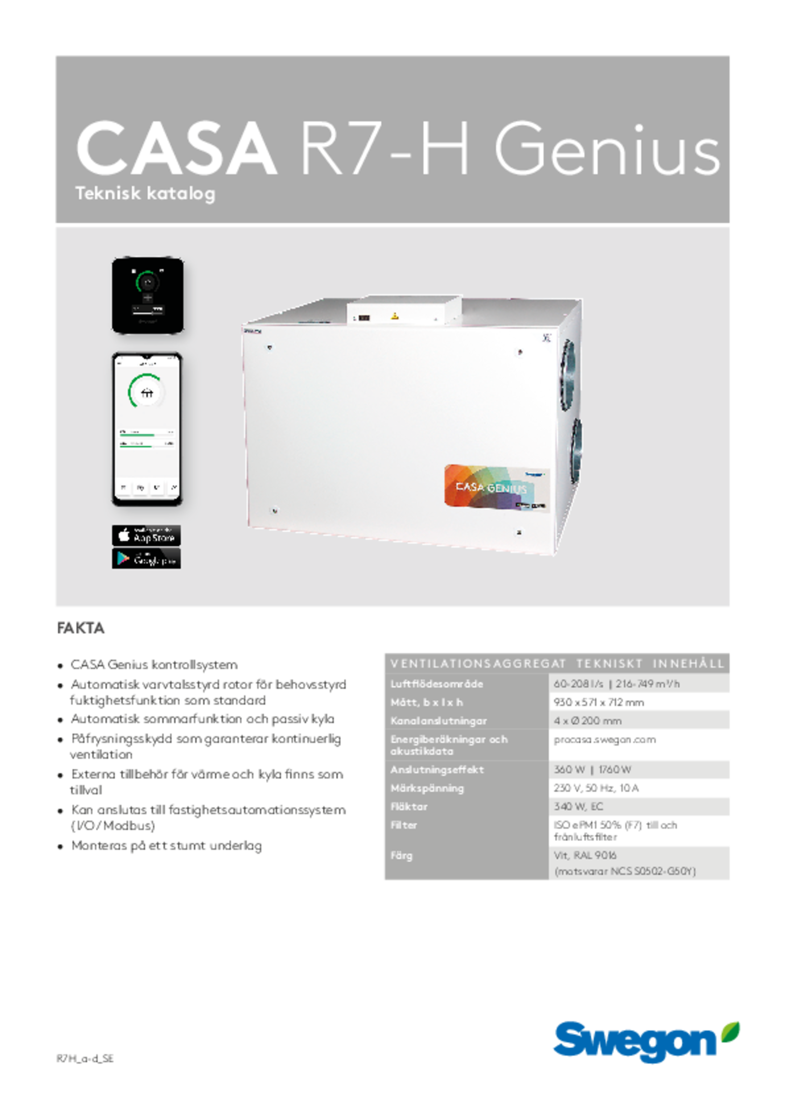 Swegon CASA R7 Genius teknisk katalog (pdf 7.95MB) GENIUS Teknisk katalog