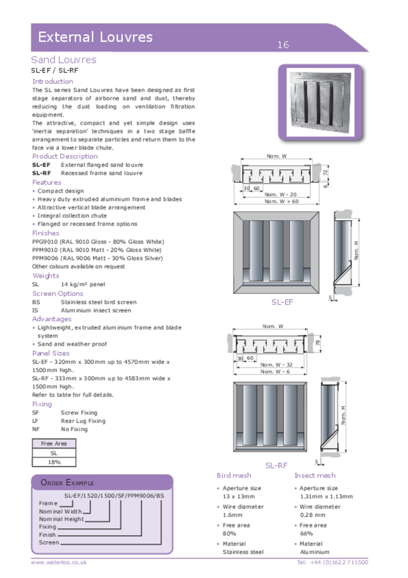 The SL series Sand Louvres have been designed as first stage separators of airborne sand and dust, thereby reducing the dust loading on ventilation filtration equipment.