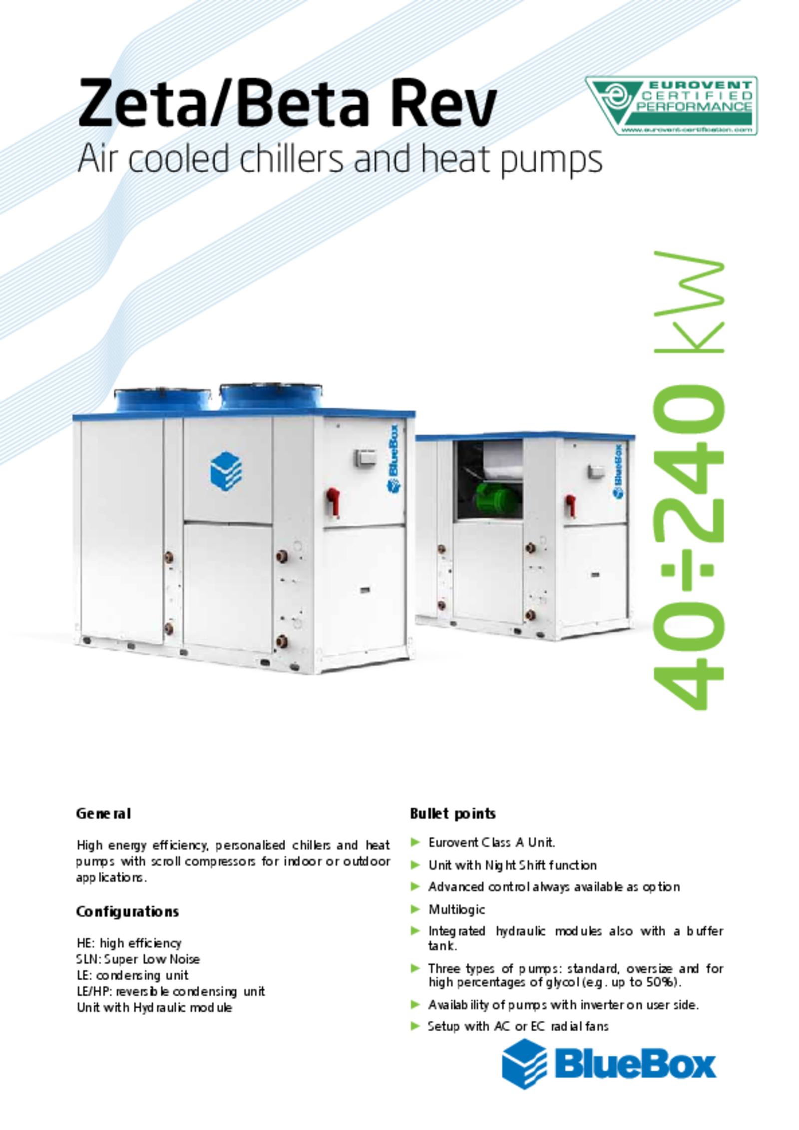 Chillers and reversible units with hermetic scroll compressors and plate heat exchanger. Extended range, versatile applications.