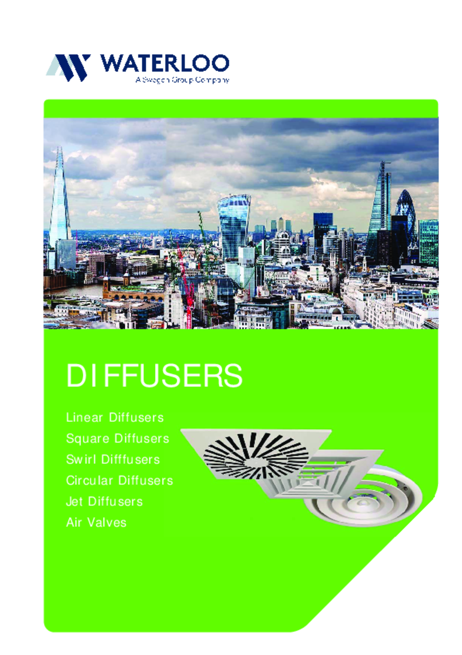 The MC diffuser has been designed for both supply and exhaust applications requiring compact circular diffusers; unlike conventional high aspiration diffusers the MC has a small overall to neck size ratio. The diffusers are adjustable to produce horizontal or vertical air patterns.