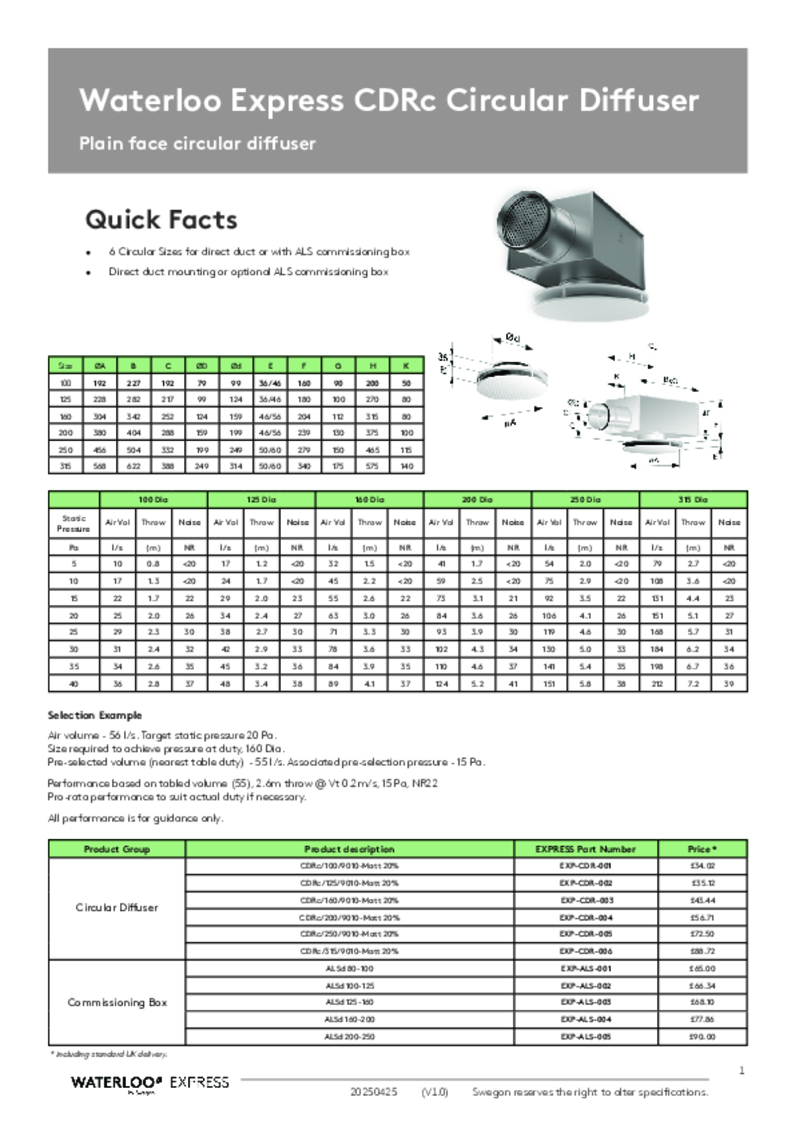 - Non-perforated diffuser face = CDR