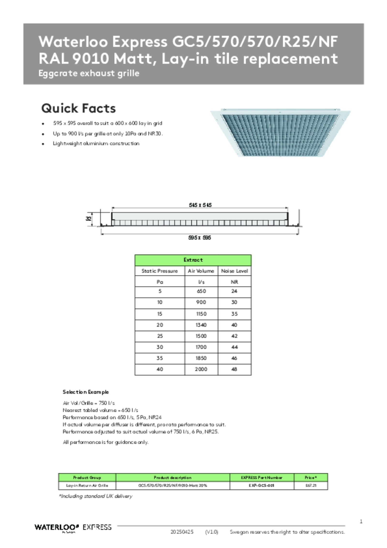 | Product specification (pdf 2.06MB) | Waterloo Mill Finish Diffusers | Others | |