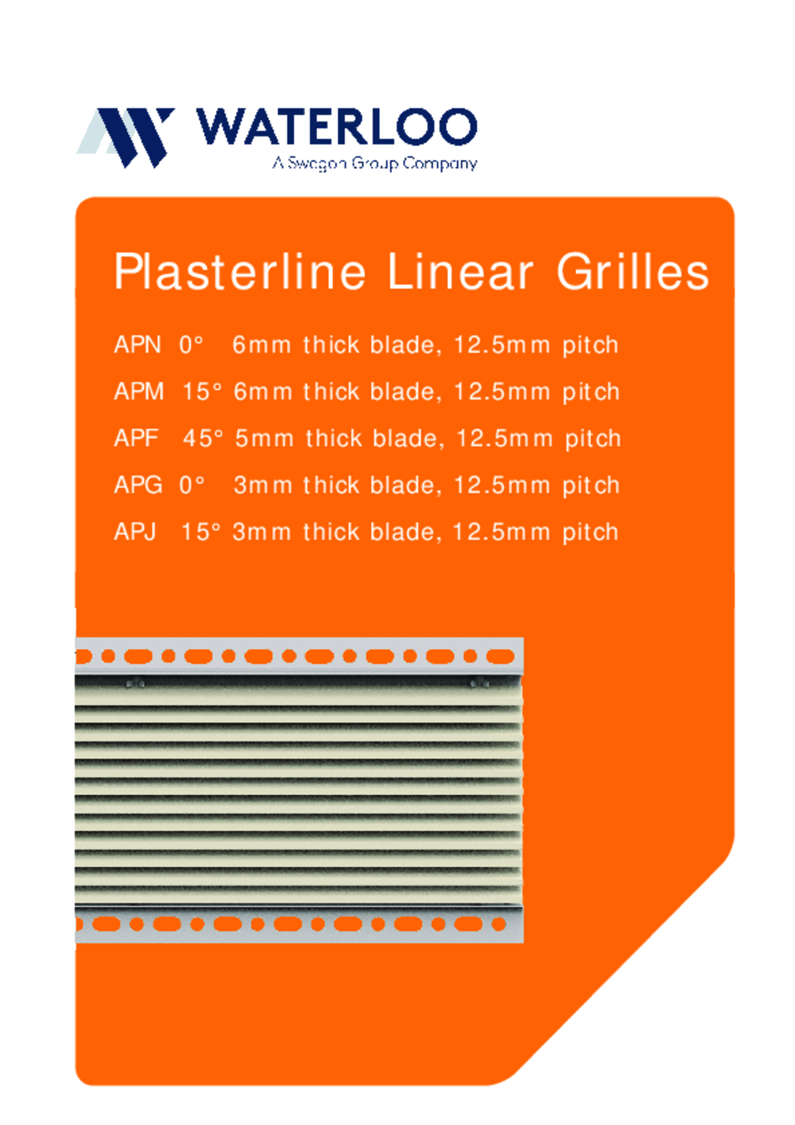| Product Sheet (pdf 10.9MB) | Waterloo Plasterline Series Linear Grilles | Technical catalogue | |