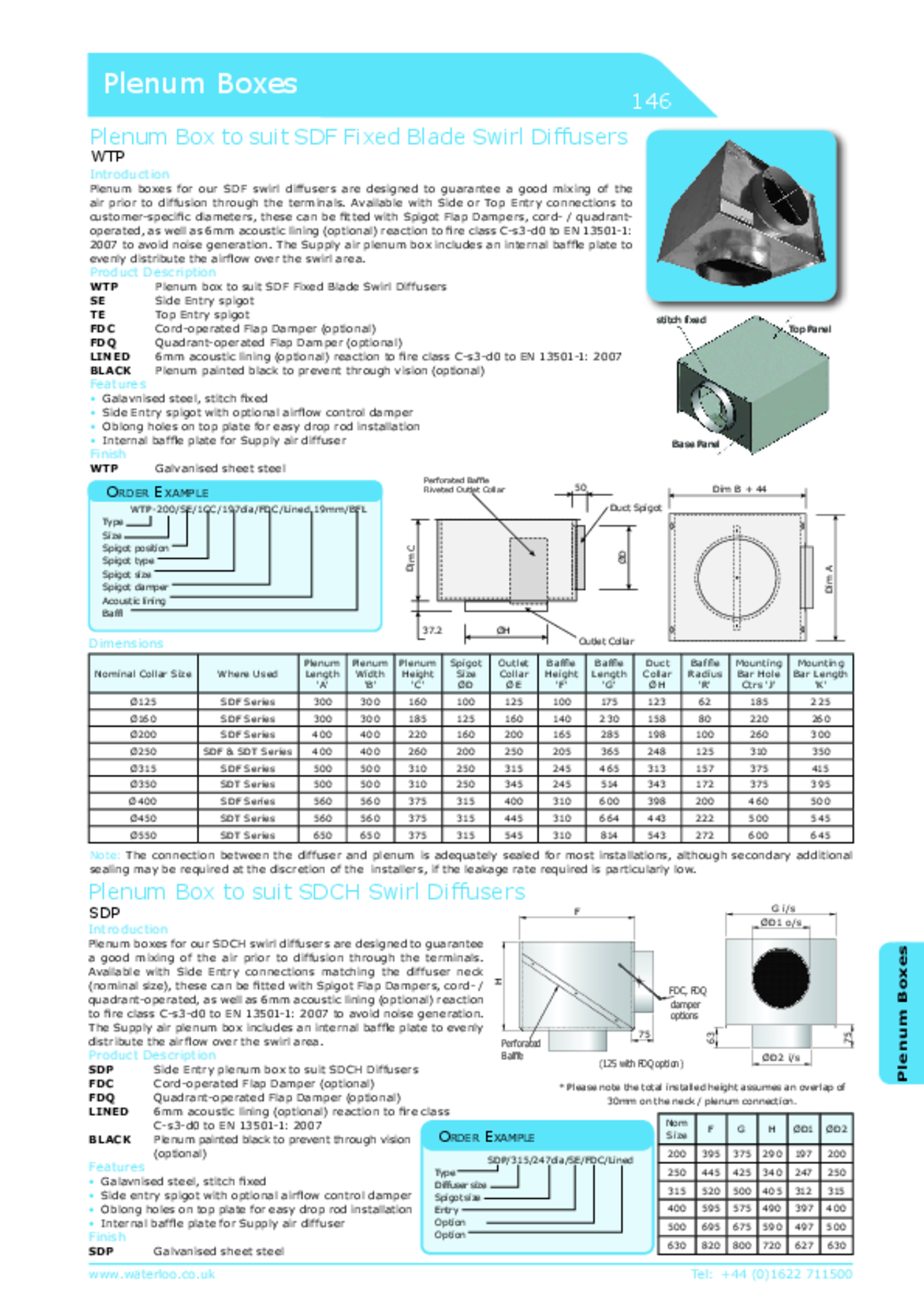 - Options – 6mm acoustic lining (optional) reaction to fire class C-s3-d0 to EN 13501-1: 2007